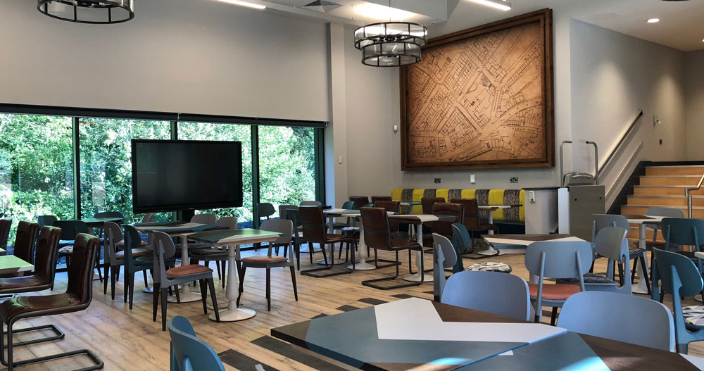The training room is a large space that is both a flexible and creative zone that allows for a variety of set-ups. With an eclectic selection of furniture and a feature wall filled with beer crates and brewery memorabilia, it’s an area that’s definitely going to inspire and continue the proud heritage that Thwaites regards so highly. With floor to ceiling windows, delegates will have unobstructed views of the brewery building, which we hope will be an added inspiration!
